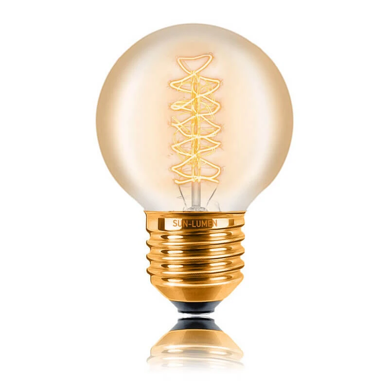 Дизайнерская лампа G45 F5 053-648 Sun Lumen имеет лаконичный дизайн и практична в использовании, так как для монтажа применяется классический патрон E27. Оригинальная золотая колба создаст в помещении особую атмосферу, добавит интерьеру изысканности и продемонстрирует индивидуальность хозяина.