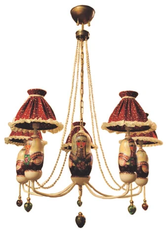 Дизайнерский светильник №100/1 "Карусель" с матрёшками НСБ05-5/60-520/100 ГусевЪ прекрасно подходит для жилых пространств и общественных заведений самых разнообразных стилей: лофт, винтаж, кантри, прованс и модерн.