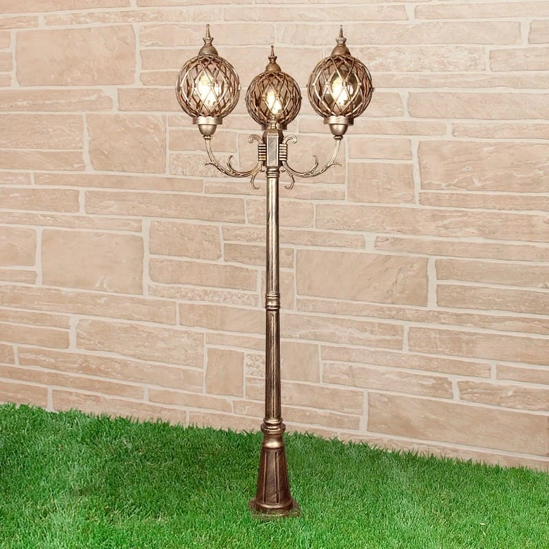Ретро фонарь уличный a025304 бренда Elektrostandard цвет черное золото подходит для установки в садах и парках. Данная модель отличается высоким уровнем защищённости от пыли и воды - IP44. Ретро фонарь уличный a025304 устойчив к перепадам температуры. Лофт светильник Sirius F/3 прост в использовании и не нуждается в окрашивании. Подбирая приборы освещения для своего загородного дома или дачи, обратите внимание на качественные светильники Elektrostandard.