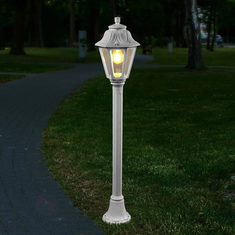 Ретро столб уличный E22.151.000.WXF1R от итальянского бренда Fumagalli цвета белый подходит для установки в садовых, парковых зонах. Данная модель отличается высоким уровнем защищённости от пыли и воды - IP55. Ретро столб уличный E22.151.000.WXF1R Fumagalli прекрасно работает при перепадах температур от -60 до +90 °C. Модель надёжно защищена от ультрафиолетовых лучей, не подвержена коррозии. Лофт Светильник прост в использовании и не нуждается в окрашивании. Подбирая приборы освещения для своего загородного дома или дачи, обратите внимание на качественные светильники Fumagalli.