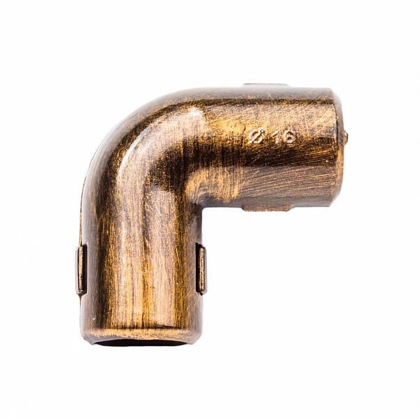 Ретро проводка в трубках великолепно подходит для современных интерьерных решений. Угол для труб BTU1-16-25 BIRONI цвет бронзовый изготовлен из прочного пластика. Модель разработана с учётом всех современных требований, стандартов и ГОСТов. Цвет бронзовый один из самых популярных, используемых в ретро электрике. Не удивительно, что Угол для труб очень часто используется дизайнерами, как при классических интерьерных решениях, так в стилях лофт, стимпанк, эко. Дизайнерский модель прекрасно сочетается в комплектации с интерьерными распределительными коробками, выключателями и розетками.