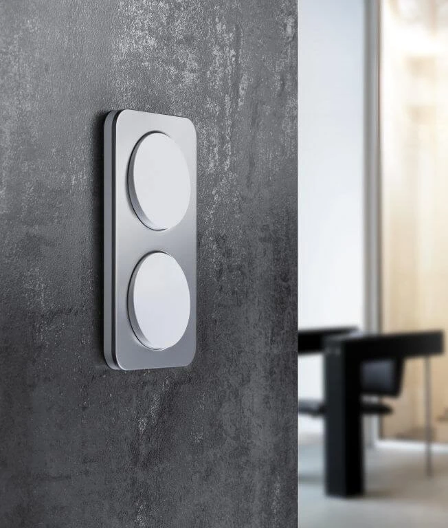 Дизайнерская рамка 3 местная, цвет алюминий/черный 10132184 Berker прекрасно подойдет для монтажа розеток и выключателей серии .