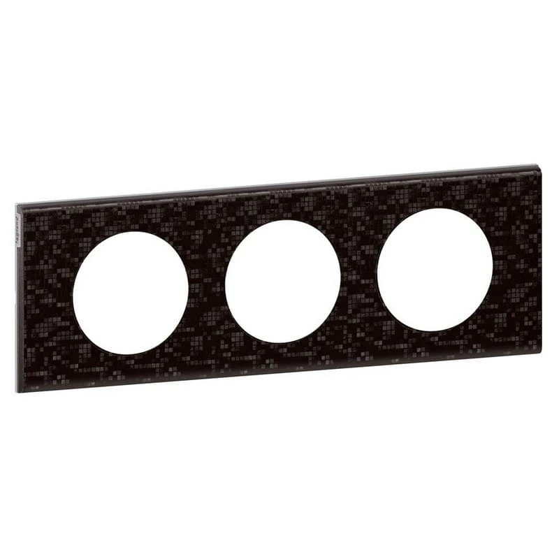 Дизайнерская рамка 3 местная, цвет кожа блэк пиксел 069453 Legrand прекрасно подойдет для монтажа розеток и выключателей серии Celiane / кожа блэк пиксел.