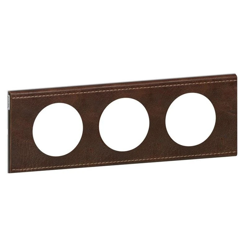 Дизайнерская рамка 3 местная, цвет кожа коричневая 069403 Legrand прекрасно подойдет для монтажа розеток и выключателей серии Celiane / кожа коричневая.