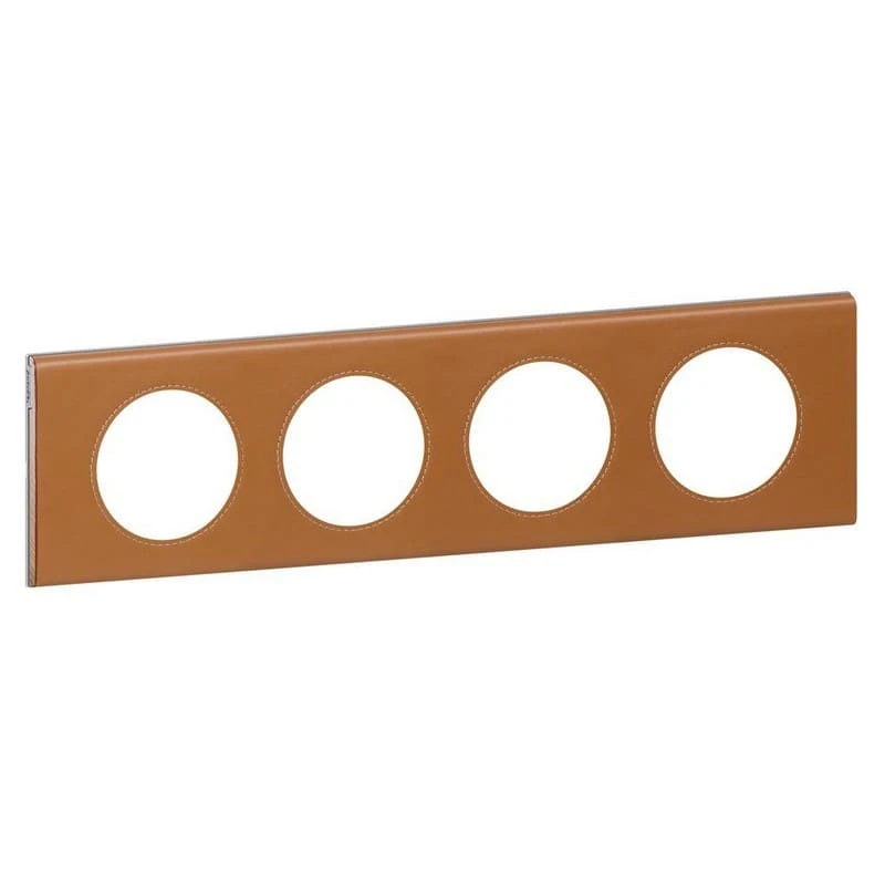 Дизайнерская рамка 4 местная, цвет кожа карамель 069424 Legrand прекрасно подойдет для монтажа розеток и выключателей серии Celiane / кожа карамель.