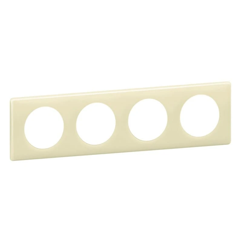 Дизайнерская рамка 4 местная, цвет слоновая кость 066624 Legrand прекрасно подойдет для монтажа розеток и выключателей серии Celiane / слоновая кость.