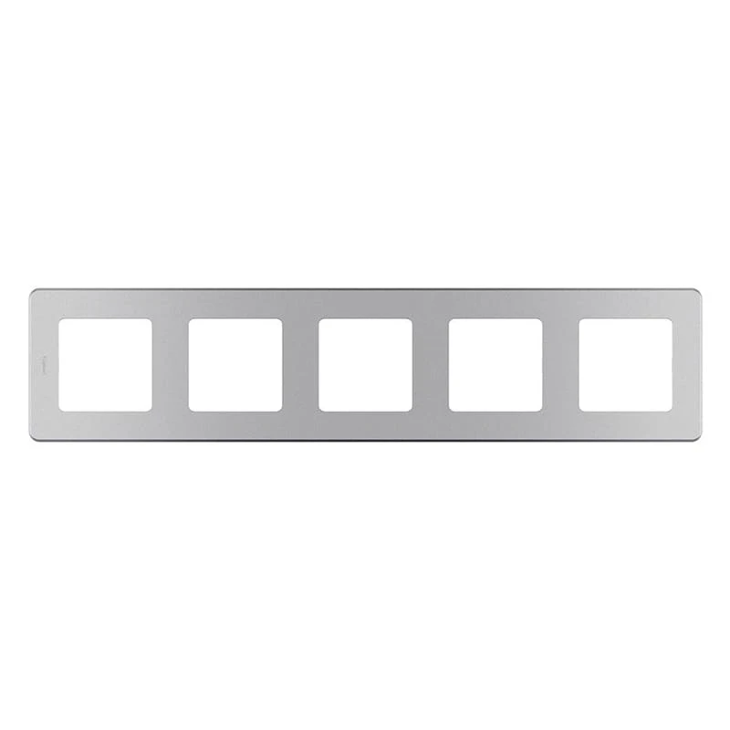Дизайнерская рамка 5 местная, цвет алюминий 673972 Legrand прекрасно подойдет для монтажа розеток и выключателей серии Atlas Design / алюминий.
