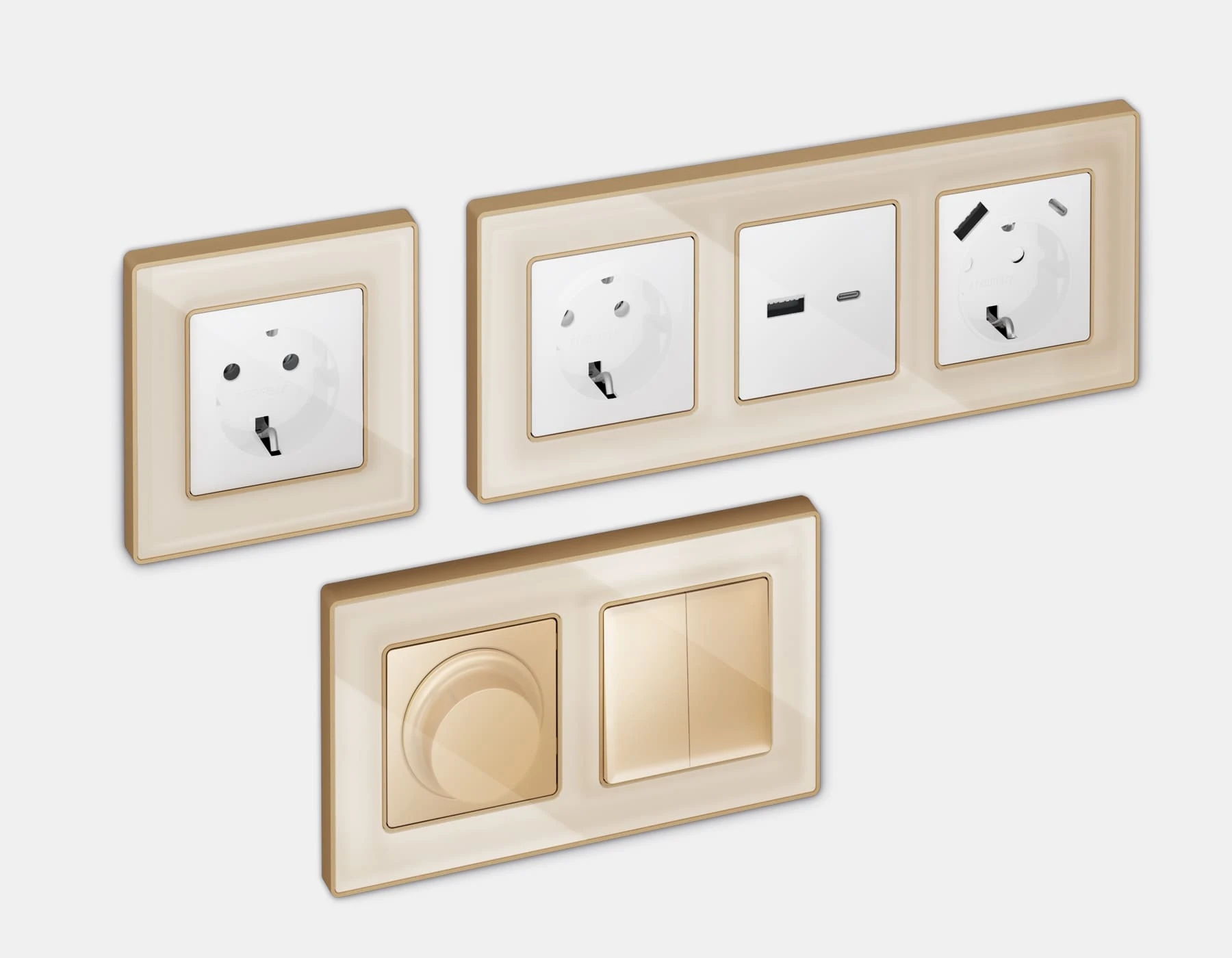 Многогранный ассортимент Ambrella Volt включает в себя механизмы, лицевые панели и рамки, а также комплекты, доступные в различных цветовых решениях. Продукция представлена в модульном исполнении, что позволяет гибко настраивать внешнийвид и функциональность. Вам будет легко заменить лицевую панель, рамку или механизм, найдя идеальное сочетание цветов.
