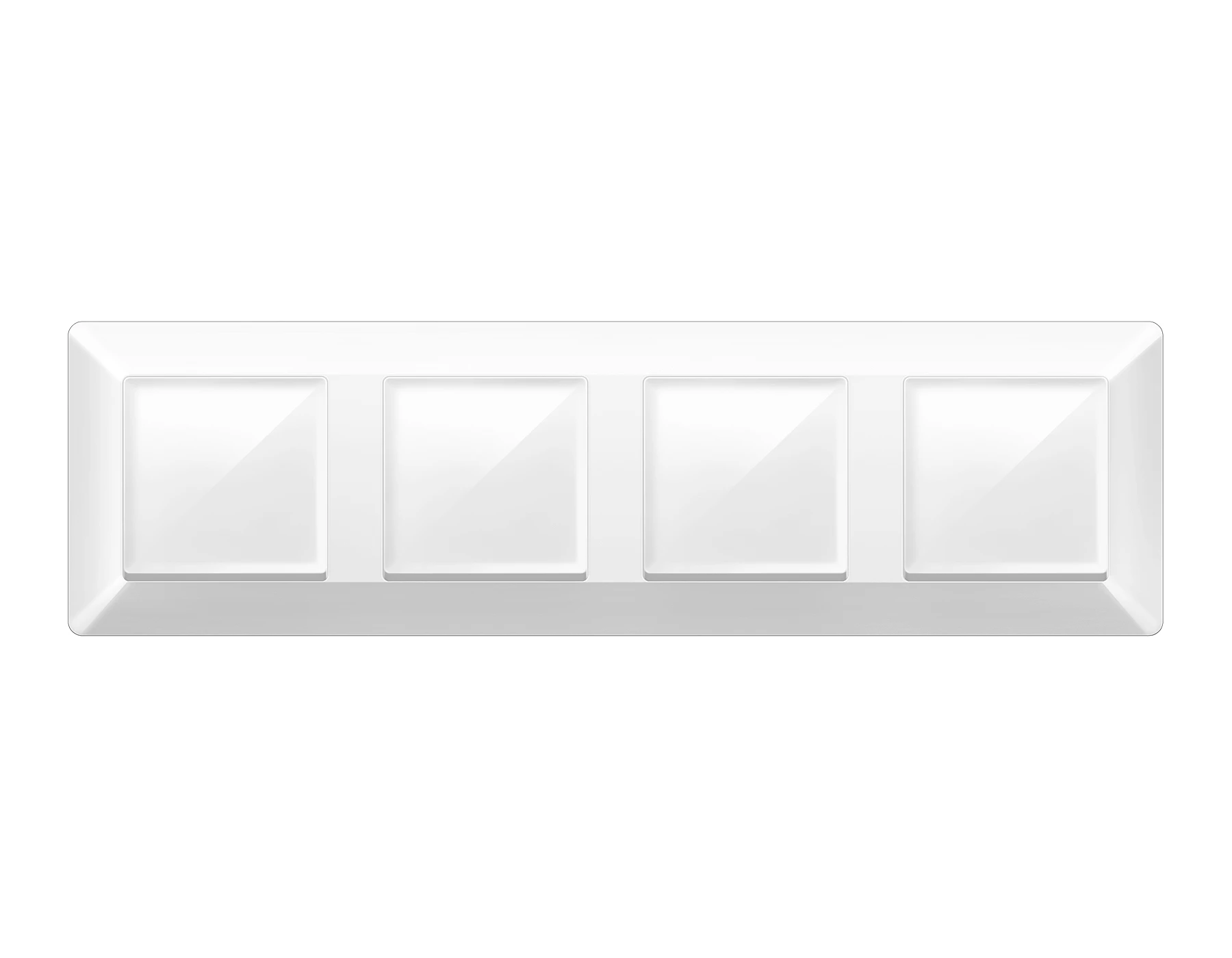 Дизайнерская рамка из термопластика 4 местная, цвет белый глянец AF110104 Ambrella Volt прекрасно подойдет для монтажа розеток и выключателей серии ALFA Line / белый глянец.