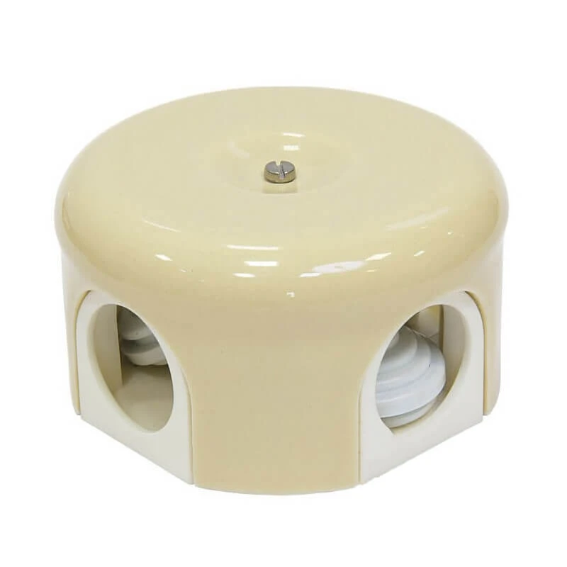Декоративная распаячная коробка D78 Lindas цвета слоновая кость вызывает настоящее восхищения с первого взгляда. Распределительная коробка Lindas цвет слоновая кость в стиле ретро изготовлена из высококачественной керамики Дизайнерская распаячная коробка 33009 Lindas прекрасно подходит для современных интерьерных решений. Винтажная распределительная коробка разработана с учётом всех современных требований, стандартов и ГОСТов.Классический цвет слоновая кость делает данную модель весьма популярной. Данную ретро монтажную коробку очень часто задействуют в своих проектах дизайнеры, как при классических интерьерных решениях, так и в стилях лофт, стимпанк, эко.Дизайнерская распаячная коробка ТМ Lindas замечательно сочетается в комплектации с интерьерными ретро проводами, наружными латунными трубками. Распаячная коробка D78 Lindas цвета слоновая кость подчеркнёт стиль комнаты и придаст интерьеру особый шарм!