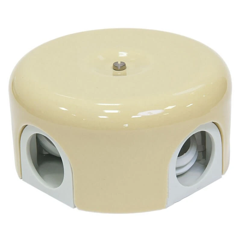 Декоративная распаячная коробка D90 Lindas цвета слоновая кость вызывает настоящее восхищения с первого взгляда. Распределительная коробка Lindas цвет слоновая кость в стиле ретро изготовлена из высококачественной керамики. Дизайнерская распаячная коробка 33509 Lindas прекрасно подходит для современных интерьерных решений. Винтажная распределительная коробка разработана с учётом всех современных требований, стандартов и ГОСТов.Классический цвет слоновая кость делает данную модель весьма популярной. Данную ретро монтажную коробку очень часто задействуют в своих проектах дизайнеры, как при классических интерьерных решениях, так и в стилях лофт, стимпанк, эко.Дизайнерская распаячная коробка ТМ Lindas замечательно сочетается в комплектации с интерьерными ретро проводами, наружными латунными трубками. Распаячная коробка D90 Lindas цвета слоновая кость подчеркнёт стиль комнаты и придаст интерьеру особый шарм!