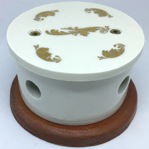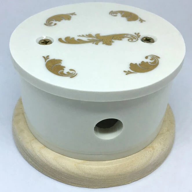 Декоративная распаячная коробка D90 ЦИОН цвета золото вызывает настоящее восхищения с первого взгляда. Распределительная коробка ЦИОН цвет золото в стиле ретро изготовлена из высококачественной керамики. Дизайнерская распаячная коробка РК-З1 ЦИОН прекрасно подходит для современных интерьерных решений. Винтажная распределительная коробка разработана с учётом всех современных требований, стандартов и ГОСТов.Классический цвет золото делает данную модель весьма популярной. Данную ретро монтажную коробку очень часто задействуют в своих проектах дизайнеры, как при классических интерьерных решениях, так и в стилях лофт, стимпанк, эко.Дизайнерская распаячная коробка ТМ ЦИОН замечательно сочетается в комплектации с интерьерными ретро проводами, наружными латунными трубками. Распаячная коробка D90 ЦИОН цвета золото подчеркнёт стиль комнаты и придаст интерьеру особый шарм!