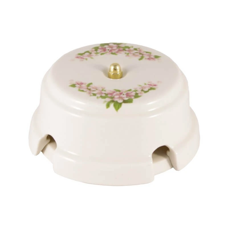 Декоративная распаячная коробка D93 ЛЕАНЗА цвет розовые цветы вызывает настоящее восхищения с первого взгляда. Распределительная коробка ЛЕАНЗА розовые цветы в стиле ретро изготовлена из высококачественного фарфора. Дизайнерская распаячная коробка КРРЗ ЛЕАНЗА прекрасно подходит для современных интерьерных решений. Винтажная распределительная коробка разработана с учётом всех современных требований, стандартов и ГОСТов.Классический цвет розовые цветы делает данную модель весьма популярной. Данную ретро распределительную коробку очень часто задействуют в своих проектах дизайнеры, как при классических интерьерных решениях, так и в стилях лофт, стимпанк, эко.Дизайнерская распаячная коробка ТМ ЛЕАНЗА замечательно сочетается в комплектации с интерьерными ретро проводами, наружными латунными трубками. Распаячная коробка D93 ТМ ЛЕАНЗА подчеркнёт стиль комнаты и придаст интерьеру особый шарм!