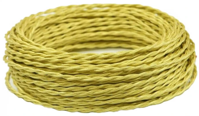 Витой ретро кабель для открытой проводки ПРВ2250-ЗЛШ Interior Electric цвет светло-золотой шелк великолепно подходит для современных интерьерных решений. Винтажный провод Interior Electric ПРВ2250-ЗЛШ высокого качества. Он разработан с учётом всех современных требований, стандартов и ГОСТов. Цвет светло-золотой шелк один из самых популярных, используемых в ретро электрике.