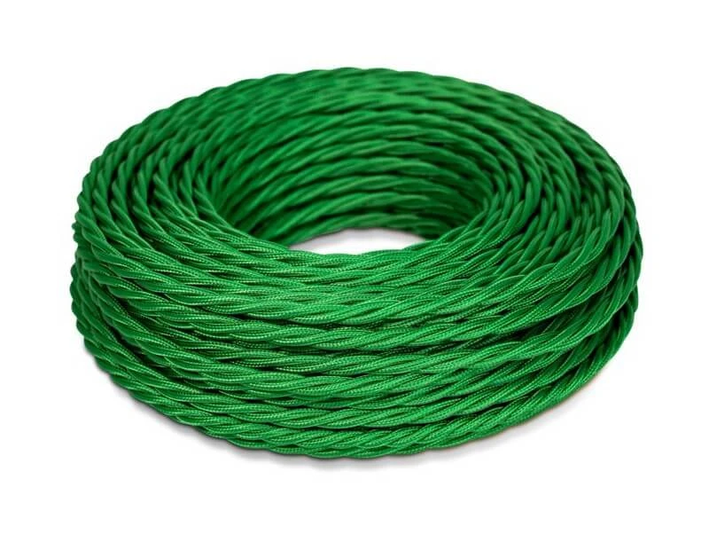 Цвет зеленый шелк один из самых популярных цветов, используемых в ретро электрике. Не удивительно, что круглый провод очень часто используется дизайнерами, как при классических интерьерных решениях, так в стилях лофт, стимпанк, эко. Дизайнерский кабель прекрасно сочетается в комплектации с интерьерными распределительными коробками, ретро втулками и дизайнерскими выключателями.