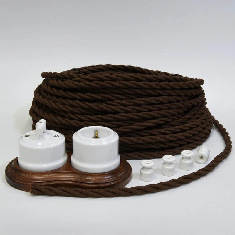 Ретро кабель 61242 Lindas цвет коричневый является отличным декоративным решением для открытой проводки. Дизайнерский кабель исполнен в матовой оплётке, которая придаёт некоторый блеск, что подчёркивает стиль Вашего интерьера.Винтажный кабель достаточно легко монтируется на стену и потолок с помощью ретро изоляторов, втулок, проходов и распаячных коробок. Данная модель дизайнерской проводки особенно часто используется в интерьерах в стиле ретро, лофт, стимпанк, модерн и минимализм. Витой кабель UTP 5e + TV/SAT 61242 Lindas цвет коричневый отвечает всем необходимым стандартам и ГОСТам, имеет сертификат качества.Данную модель винтажного провода торговой марки Lindas часто используют дизайнеры в своих проектах. Таким образом, приобретая комплект ретро электрики Вы получаете не только электрификацию Вашего дома, но и отличное декоративное решение!