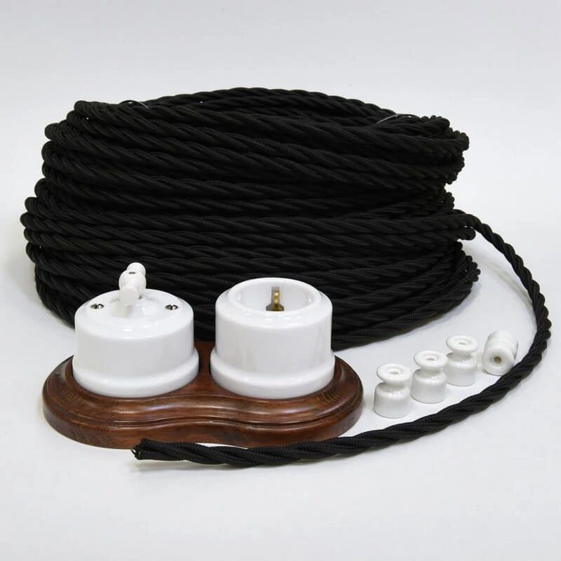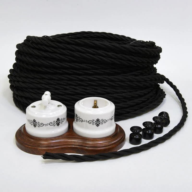 Ретро кабель электрический 63150 Lindas цвет черный является отличным декоративным решением для открытой проводки. Дизайнерский кабель исполнен в матовой оплётке, которая придаёт некоторый блеск, что подчёркивает стиль Вашего интерьера.Винтажный кабель достаточно легко монтируется на стену и потолок с помощью ретро изоляторов, втулок, проходов и распаячных коробок. Данная модель дизайнерской проводки особенно часто используется в интерьерах в стиле ретро, лофт, стимпанк, модерн и минимализм. Ретро провод электрический 63150 Lindas цвета черный отвечает всем необходимым стандартам и ГОСТам, имеет сертификат качества.Данную модель винтажного провода торговой марки Lindas часто используют дизайнеры в своих проектах. Таким образом, приобретая комплект ретро электрики Вы получаете не только электрификацию Вашего дома, но и отличное декоративное решение!