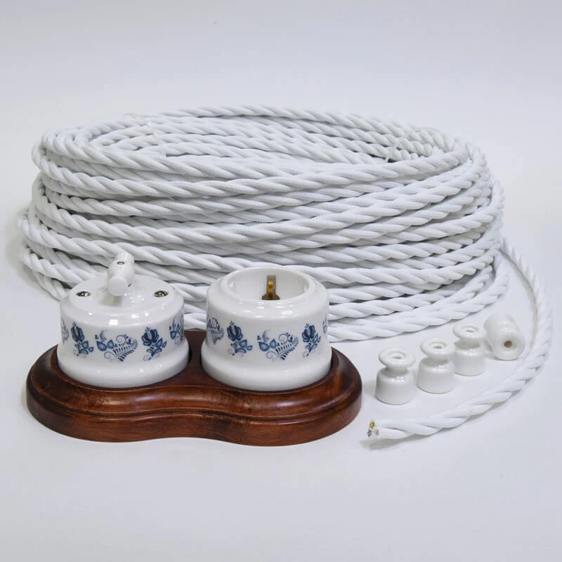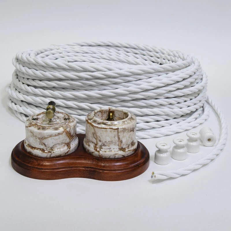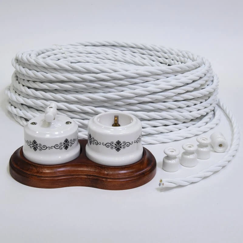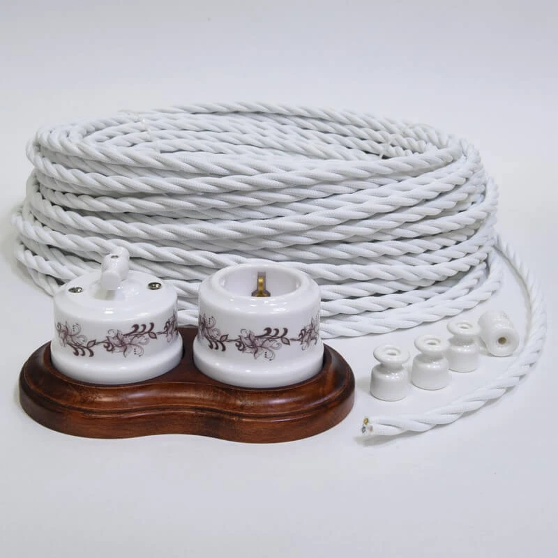 Ретро кабель 61140 Lindas цвет белый является отличным декоративным решением для открытой проводки. Дизайнерский кабель исполнен в матовой оплётке, которая придаёт некоторый блеск, что подчёркивает стиль Вашего интерьера.Винтажный кабель достаточно легко монтируется на стену и потолок с помощью ретро изоляторов, втулок, проходов и распаячных коробок. Данная модель дизайнерской проводки особенно часто используется в интерьерах в стиле ретро, лофт, стимпанк, модерн и минимализм. Ретро провод электрический 61140 Lindas цвета белый отвечает всем необходимым стандартам и ГОСТам, имеет сертификат качества.Данную модель винтажного провода торговой марки Lindas часто используют дизайнеры в своих проектах. Таким образом, приобретая комплект ретро электрики Вы получаете не только электрификацию Вашего дома, но и отличное декоративное решение!