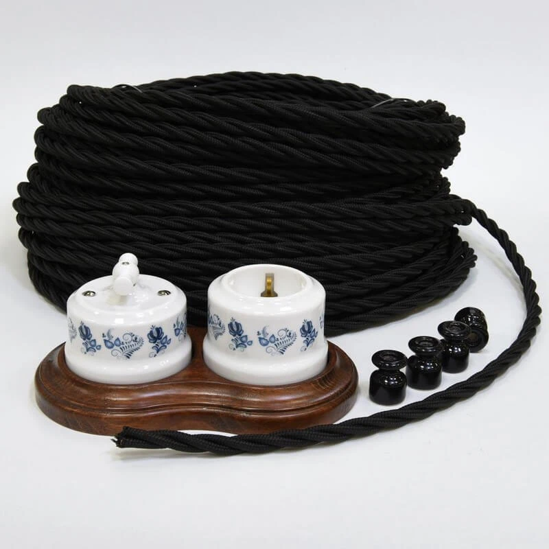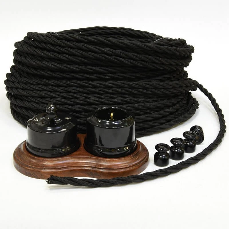 Ретро кабель 61150 Lindas цвет черный является отличным декоративным решением для открытой проводки. Дизайнерский кабель исполнен в матовой оплётке, которая придаёт некоторый блеск, что подчёркивает стиль Вашего интерьера.Винтажный кабель достаточно легко монтируется на стену и потолок с помощью ретро изоляторов, втулок, проходов и распаячных коробок. Данная модель дизайнерской проводки особенно часто используется в интерьерах в стиле ретро, лофт, стимпанк, модерн и минимализм. Ретро провод электрический 61150 Lindas цвета черный отвечает всем необходимым стандартам и ГОСТам, имеет сертификат качества.Данную модель винтажного провода торговой марки Lindas часто используют дизайнеры в своих проектах. Таким образом, приобретая комплект ретро электрики Вы получаете не только электрификацию Вашего дома, но и отличное декоративное решение!