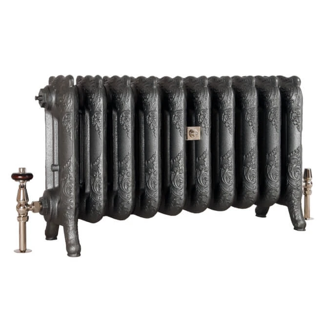 Ретро радиатор Mirabella 475/300 Exemet имеет стильный и узнаваемый дизайн: конструкция секции включает вертикальную перемычку и гребень с завитками, красивый винтажный орнамент. Дизайнерская модель идеально впишется как в винтажный интерьер, так и в лофт пространство, даже в современной квартире ретро батарея займёт почётное место. Чугунный радиатор Mirabella 475/300 Exemet рекомендовано использовать только для закрытых систем отопления. Модель изготавливают в напольном исполнении. Ретро батарея Mirabella 475/300 имеет все необходимые сертификаты качества и гарантию 5 лет (при соблюдении условий эксплуатации). Заказать данный радиатор в любом цвете Вы можете в интернет-магазине Ретроток.