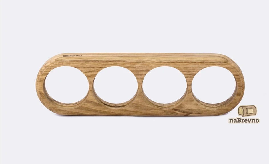 Четверная накладка на бревно 180мм из натурального дуба S4-180-D ТМ naBrevno представляет важное дополнение для декоративных розеток и ретро выключателей в современном деревянном строительстве. Данная модель накладки используется для монтажа ретро розеток и выключателей бренда Salvador на поверхность бревна или блок-хауса.