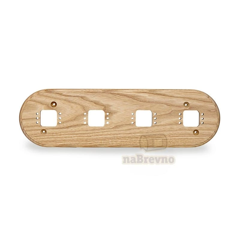Четверная накладка на бревно 240мм из натурального ясеня R+4-240 ТМ naBrevno представляет важное дополнение для декоративных розеток и ретро выключателей в современном деревянном строительстве. Данная модель накладки используется для монтажа ретро розеток и выключателей на поверхность бревна или блок-хауса.