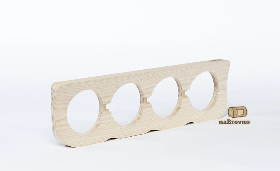 Четверная накладка на бревно 260мм из натурального ясеня S+4-260 ТМ naBrevno представляет важное дополнение для декоративных розеток и ретро выключателей в современном деревянном строительстве. Данная модель накладки используется для монтажа ретро розеток и выключателей бренда Salvador на поверхность бревна или блок-хауса.