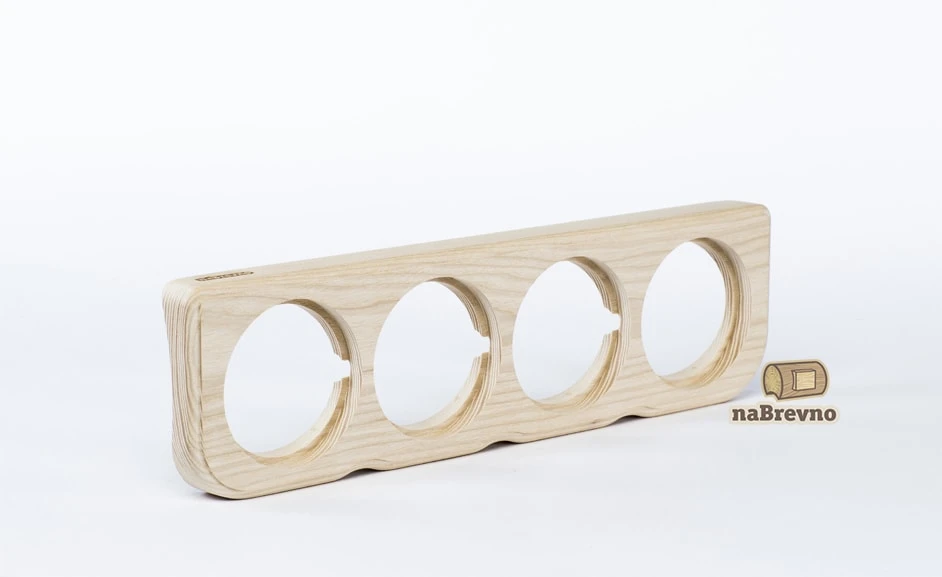 Четверная накладка на бревно 300мм из натурального ясеня S+4-300 ТМ naBrevno представляет важное дополнение для декоративных розеток и ретро выключателей в современном деревянном строительстве. Данная модель накладки используется для монтажа ретро розеток и выключателей бренда Salvador на поверхность бревна или блок-хауса.
