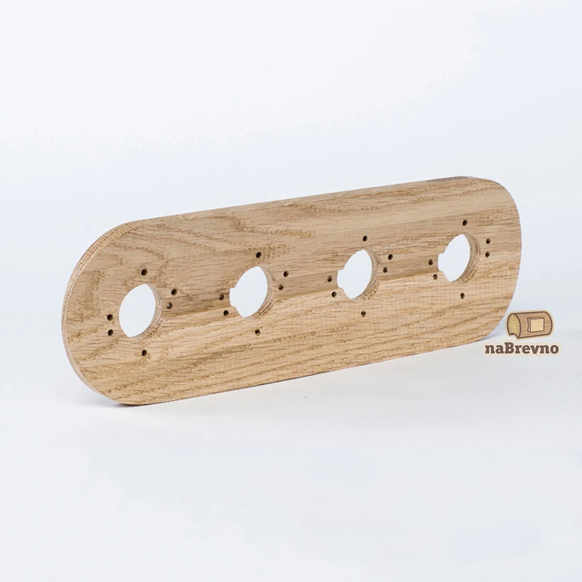 Четверная накладка на бревно 220 мм. из натурального ясеня R4-220-D naBrevno представляет важное дополнение для декоративных розеток и ретро выключателей в современном деревянном строительстве. Данная модель используется для монтажа электротоваров на поверхность бревна или блок-хауса.