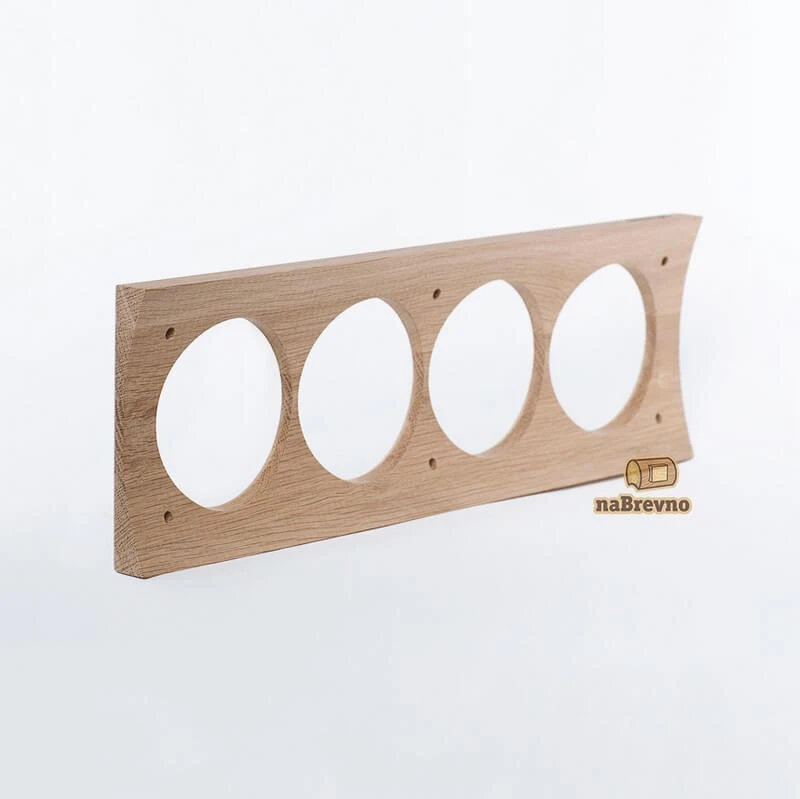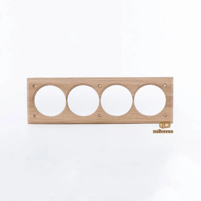 Четверная накладка на бревно 280 мм. из натурального дуба V4-280-D naBrevno представляет важное дополнение для декоративных розеток и ретро выключателей в современном деревянном строительстве. Данная модель используется для монтажа электротоваров на поверхность бревна или блок-хауса.