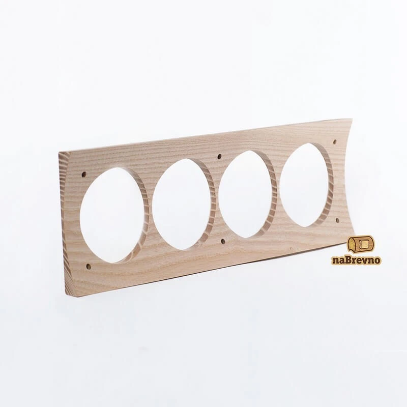 Четверная накладка на бревно 280 мм. из натурального ясеня 45.V4-280 naBrevno представляет важное дополнение для декоративных розеток и ретро выключателей в современном деревянном строительстве. Данная модель используется для монтажа электротоваров на поверхность бревна или блок-хауса.