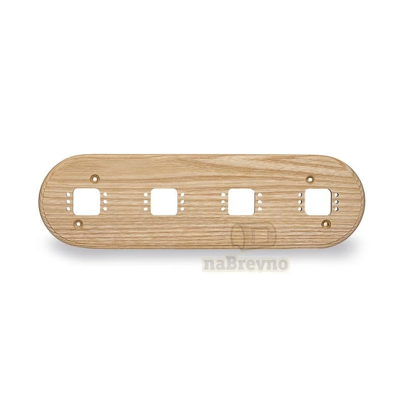 Четверная накладка на плоскость из натурального ясеня R4-0 naBrevno представляет важное дополнение для декоративных розеток и ретро выключателей в современном деревянном строительстве. Данная модель используется для монтажа электротоваров на плоскую поверхность.