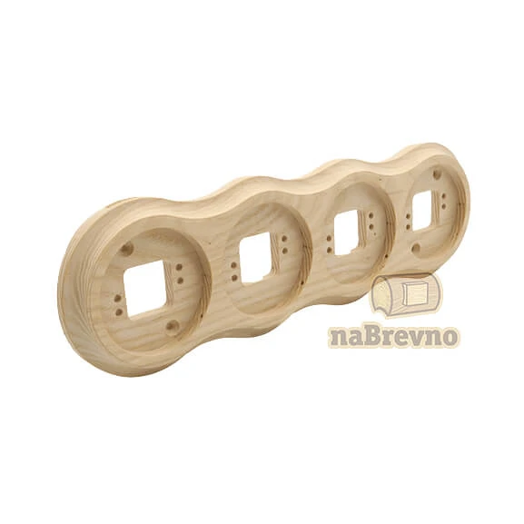 Четверная накладка на плоскость из натурального ясеня RV4-0 naBrevno представляет важное дополнение для декоративных розеток и ретро выключателей в современном деревянном строительстве. Данная модель используется для монтажа электротоваров на плоскую поверхность.