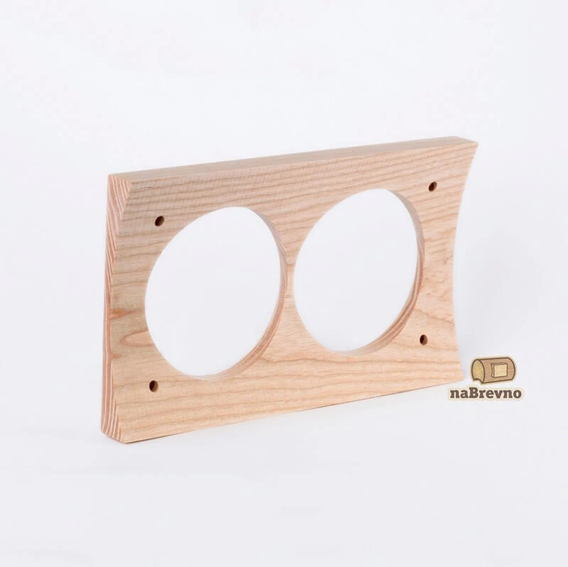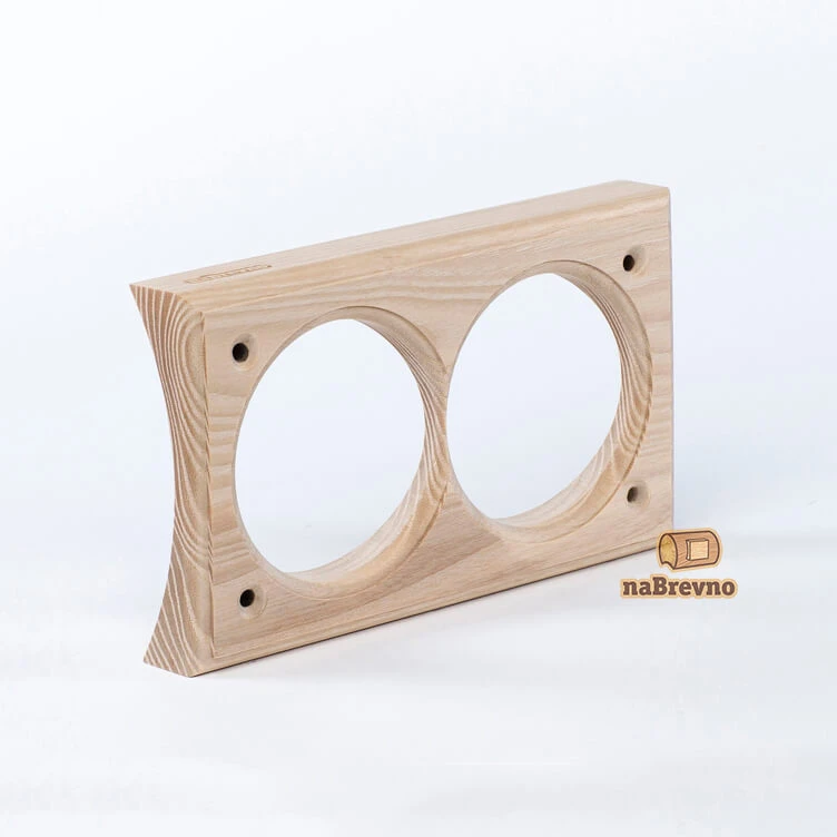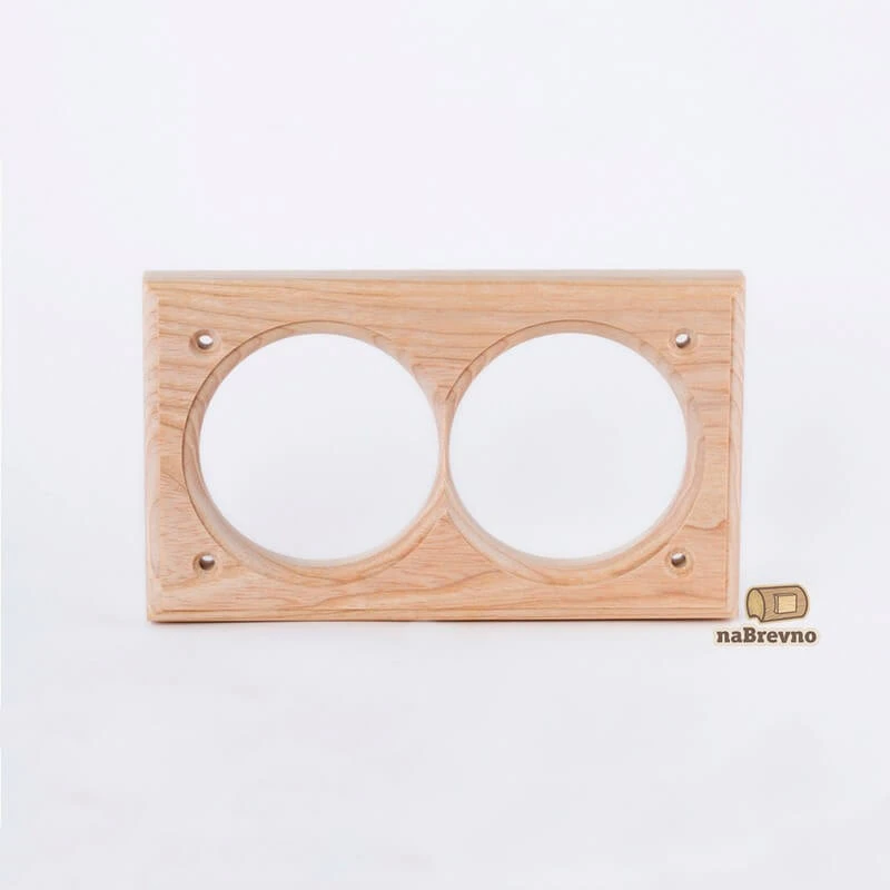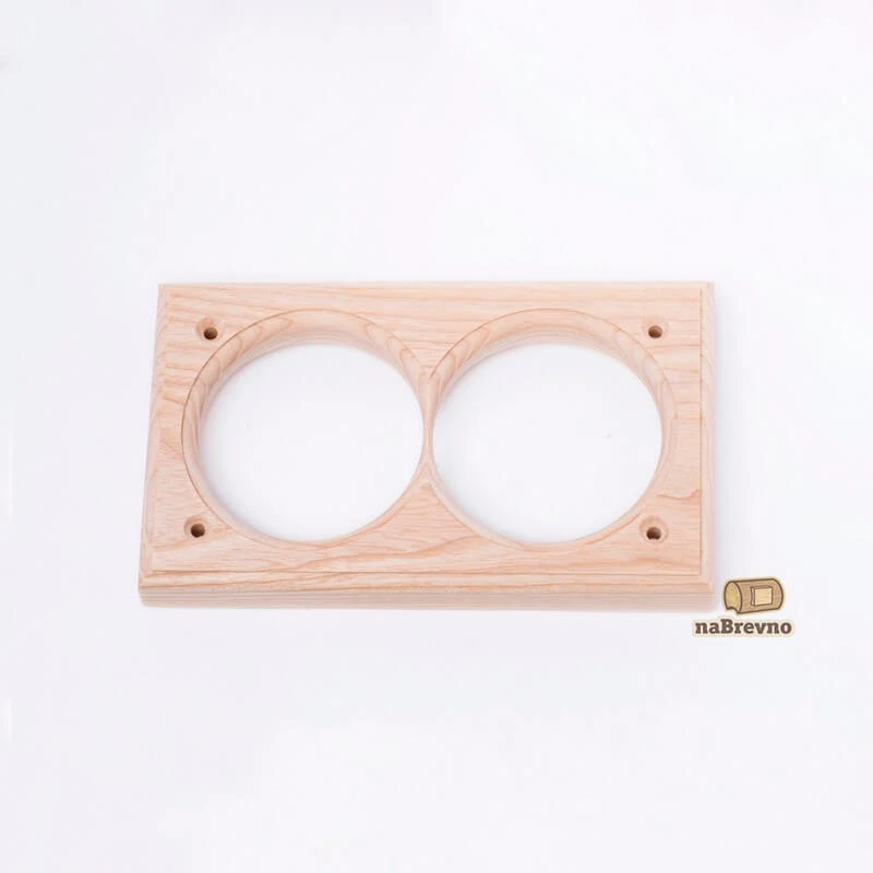 Двойная накладка на бревно 280мм, встраиваемая, из натурального ясеня V2-280 ТМ naBrevno представляет важное дополнение для декоративных розеток и ретро выключателей в современном деревянном строительстве. Данная модель накладки используется для монтажа ретро розеток и выключателей на поверхность бревна или блок-хауса.