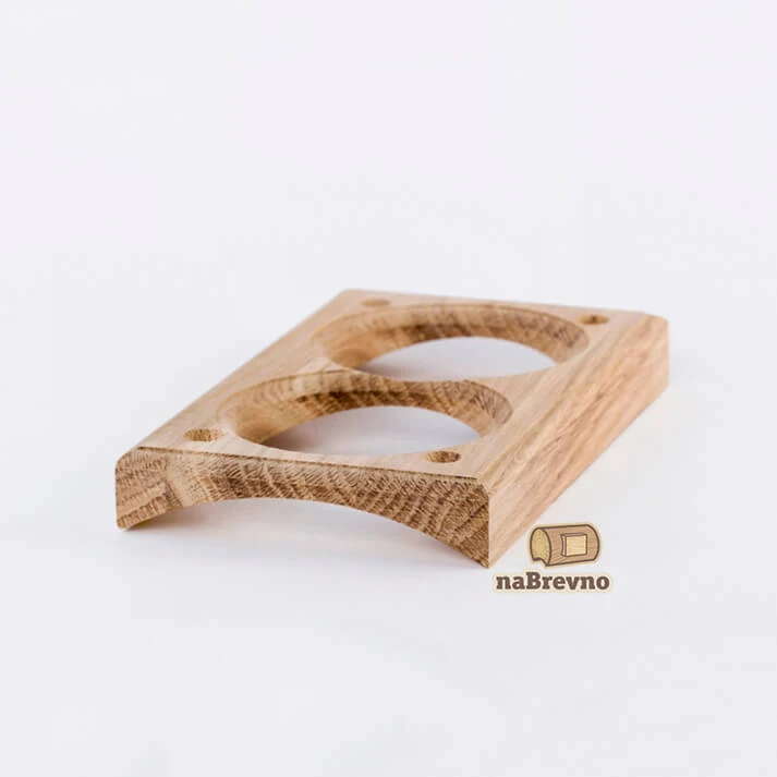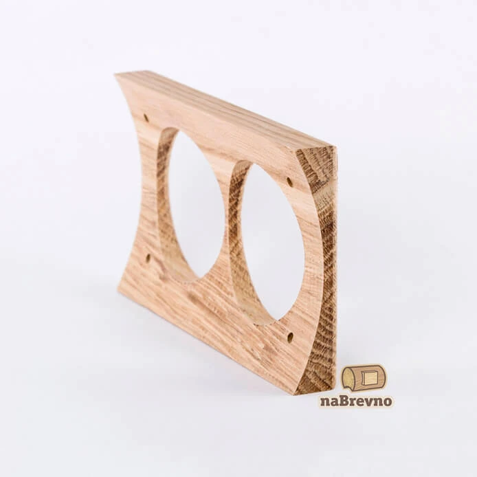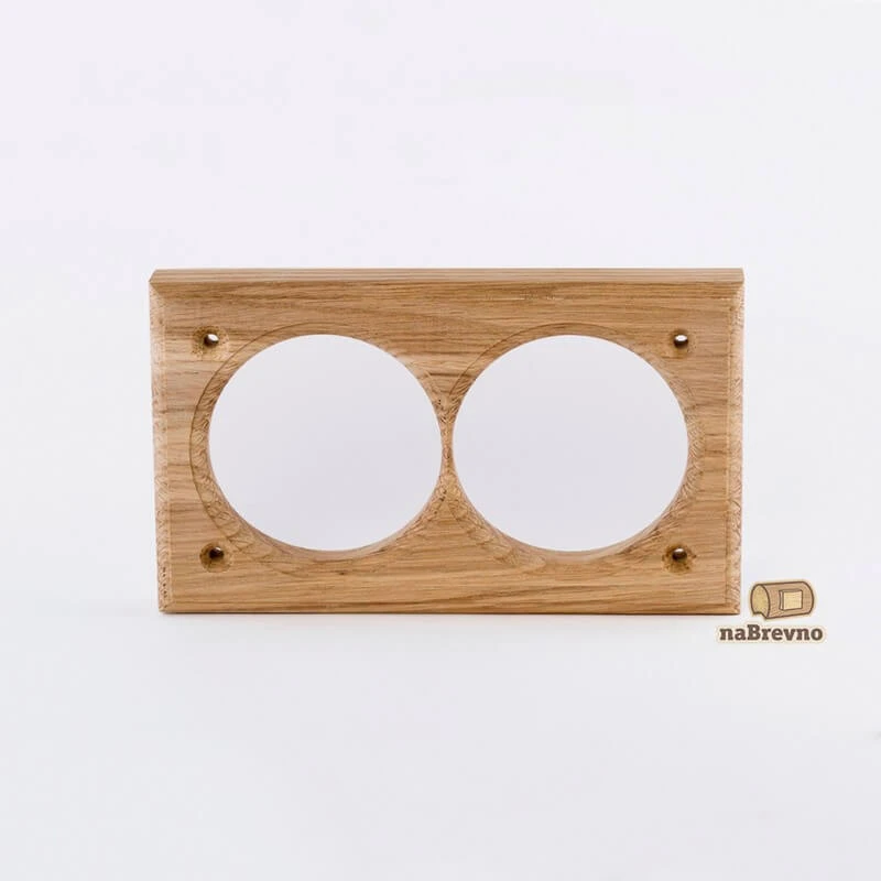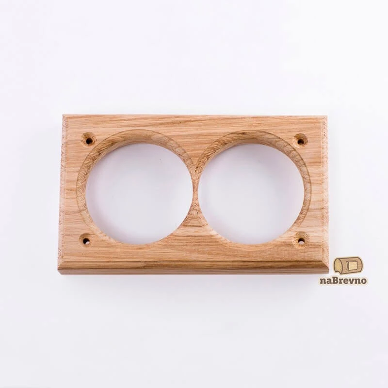 Двойная накладка на бревно 240 мм. из натурального дуба V2-240-D naBrevno представляет важное дополнение для декоративных розеток и ретро выключателей в современном деревянном строительстве. Данная модель используется для монтажа электротоваров на поверхность бревна или блок-хауса.