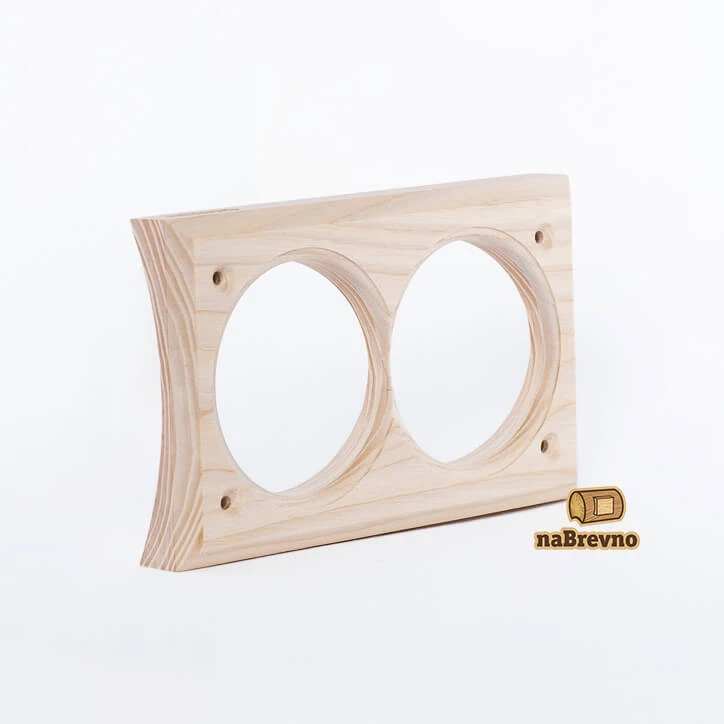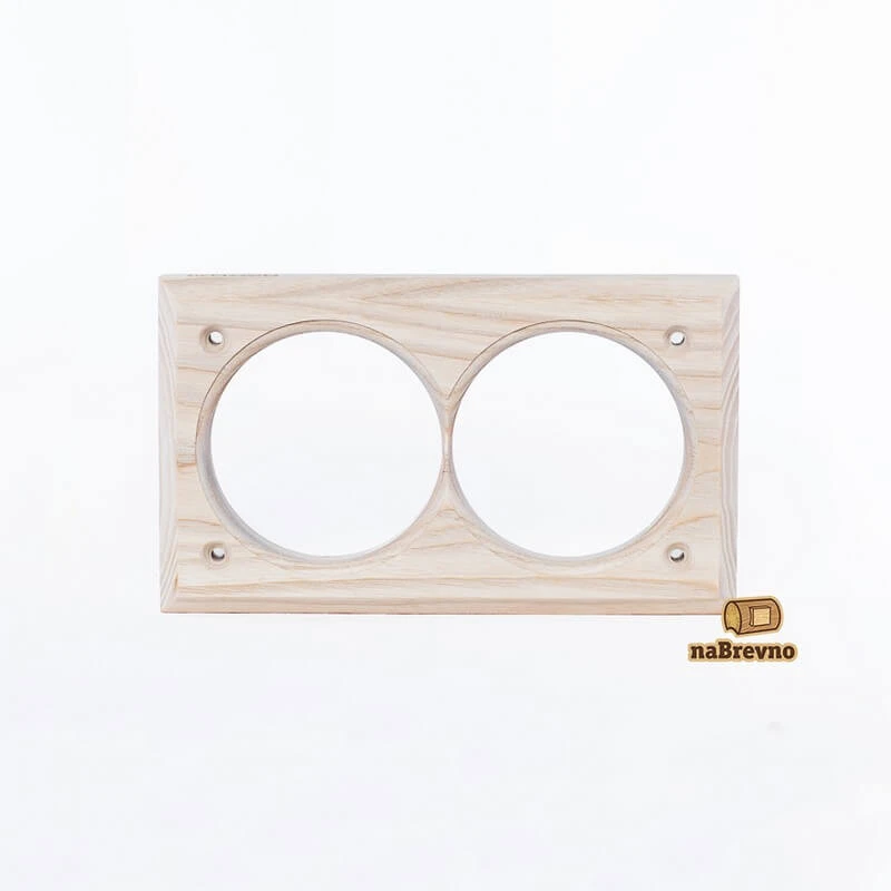 Двойная накладка на бревно 300 мм. из натурального ясеня 45.V2-300 naBrevno представляет важное дополнение для декоративных розеток и ретро выключателей в современном деревянном строительстве. Данная модель используется для монтажа электротоваров на поверхность бревна или блок-хауса.