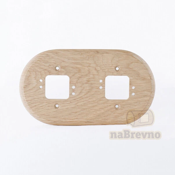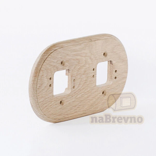 Двойная накладка на плоскость из натурального дуба R2-0-D naBrevno представляет важное дополнение для декоративных розеток и ретро выключателей в современном деревянном строительстве. Данная модель используется для монтажа электротоваров на плоскую поверхность.