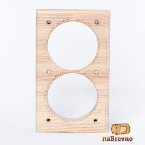 Двойная вертикальная накладка на бревно 280 мм. из натурального дуба V2*-280-D naBrevno представляет важное дополнение для декоративных розеток и ретро выключателей в современном деревянном строительстве. Данная модель используется для монтажа электротоваров на поверхность бревна или блок-хауса.