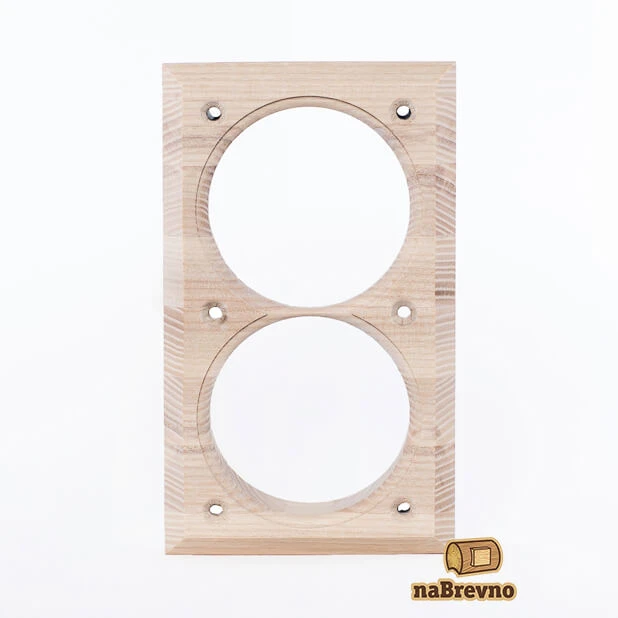 Двойная вертикальная накладка на бревно 280 мм. из натурального ясеня 45.V2*-280 naBrevno представляет важное дополнение для декоративных розеток и ретро выключателей в современном деревянном строительстве. Данная модель используется для монтажа электротоваров на поверхность бревна или блок-хауса.