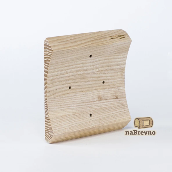 Накладка на бревно 180 мм. из натурального ясеня KV3-180 naBrevno представляет важное дополнение для распределительных коробок и светильников в современном деревянном строительстве. Данная модель используется для монтажа электротоваров на поверхность бревна или блок-хауса.