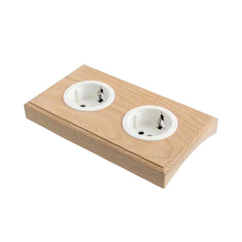 Накладка на бревно 240 мм. из натурального ясеня СМС2-240 DecoWood представляет важное дополнение для декоративных розеток и ретро выключателей в современном деревянном строительстве. Данная модель используется для монтажа ретро розеток и выключателей на поверхность бревна или блок-хауса.