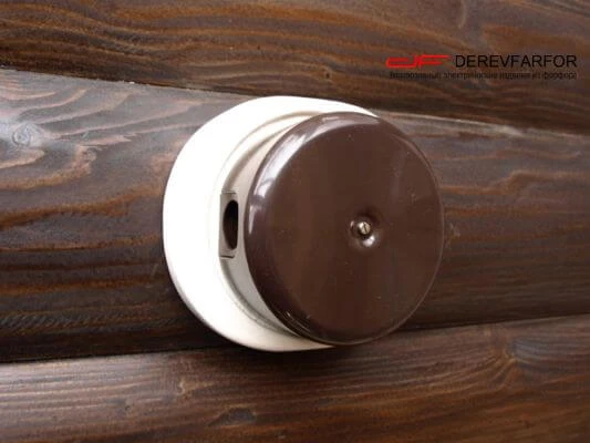 Накладка под распаечные коробки D95-111 мм. из керамики N013.16.00 ТМ Derevfarfor серия РетроБлокхаус предназначена для открытого монтажа розеток или выключателей на поверхность бревна, блок-хауса без предварительной подготовки основания. Оптимальный диаметр бревна для этой серии от 280 мм. Использование данной модели от ТМ Derevfarfor существенно облегчает процесс монтажа электроустановочных изделий на поверхность бревна.