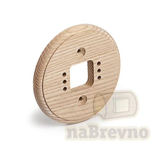 Одинарная накладка на плоскость из натурального ясеня R+1-0 naBrevno представляет важное дополнение для декоративных розеток и ретро выключателей в современном деревянном строительстве. Данная модель используется для монтажа электротоваров на плоскую поверхность.