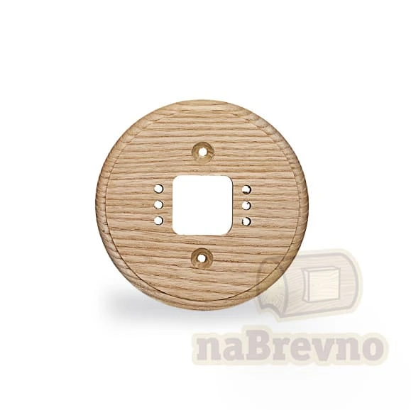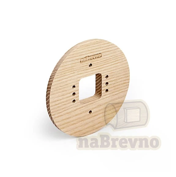 Одинарная накладка на плоскость из натурального ясеня R1-0 naBrevno представляет важное дополнение для декоративных розеток и ретро выключателей в современном деревянном строительстве. Данная модель используется для монтажа электротоваров на плоскую поверхность.