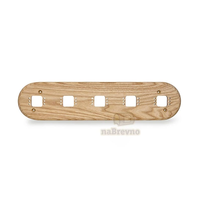 Пятерная накладка на бревно 180 мм. из натурального ясеня R+5-180 naBrevno представляет важное дополнение для декоративных розеток и ретро выключателей в современном деревянном строительстве. Данная модель используется для монтажа электротоваров на поверхность бревна или блок-хауса.