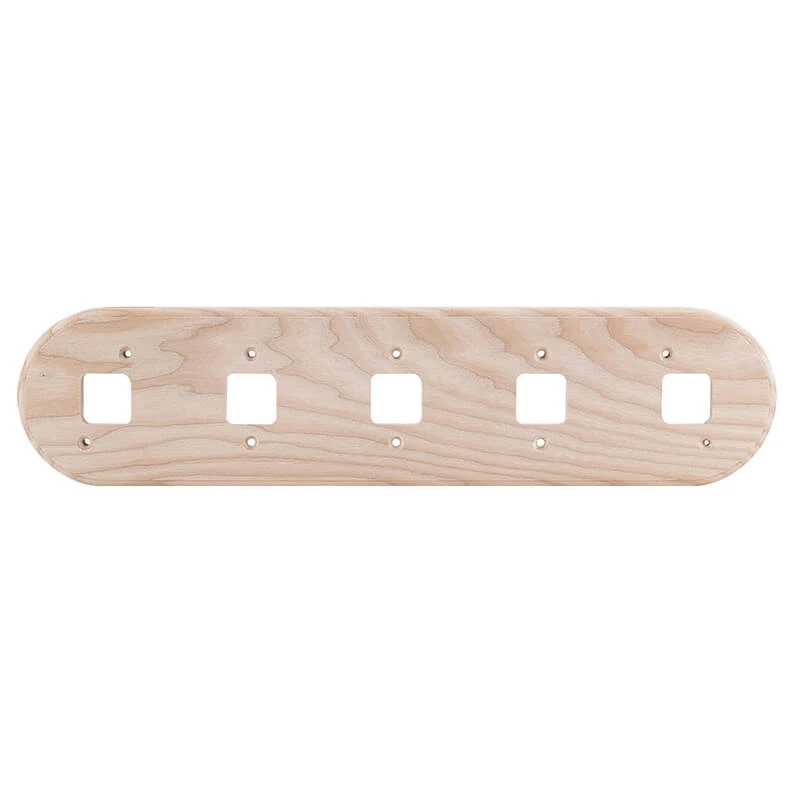 Пятерная накладка на бревно 240 мм. из натурального ясеня RM5-240-D naBrevno представляет важное дополнение для декоративных розеток и ретро выключателей в современном деревянном строительстве. Данная модель используется для монтажа электротоваров на поверхность бревна или блок-хауса.