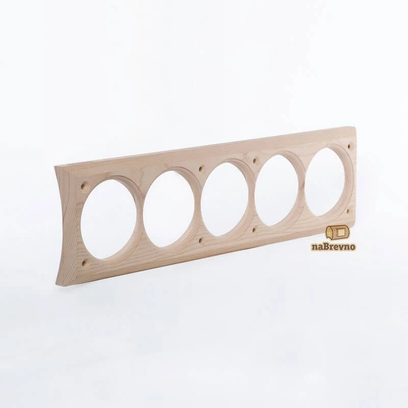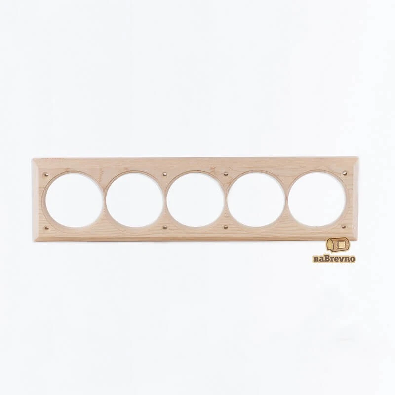 Пятерная накладка на бревно 260 мм. из натурального ясеня 45.V5-260 naBrevno представляет важное дополнение для декоративных розеток и ретро выключателей в современном деревянном строительстве. Данная модель используется для монтажа электротоваров на поверхность бревна или блок-хауса.