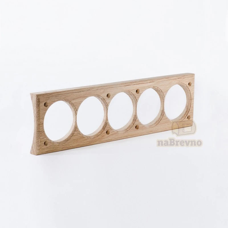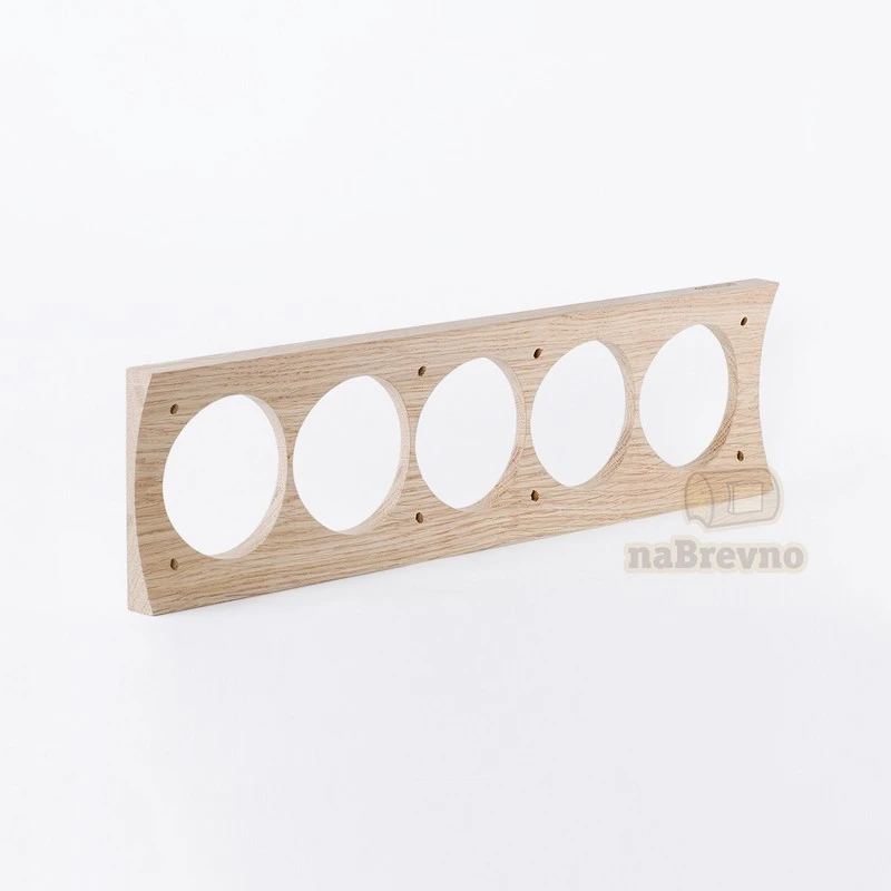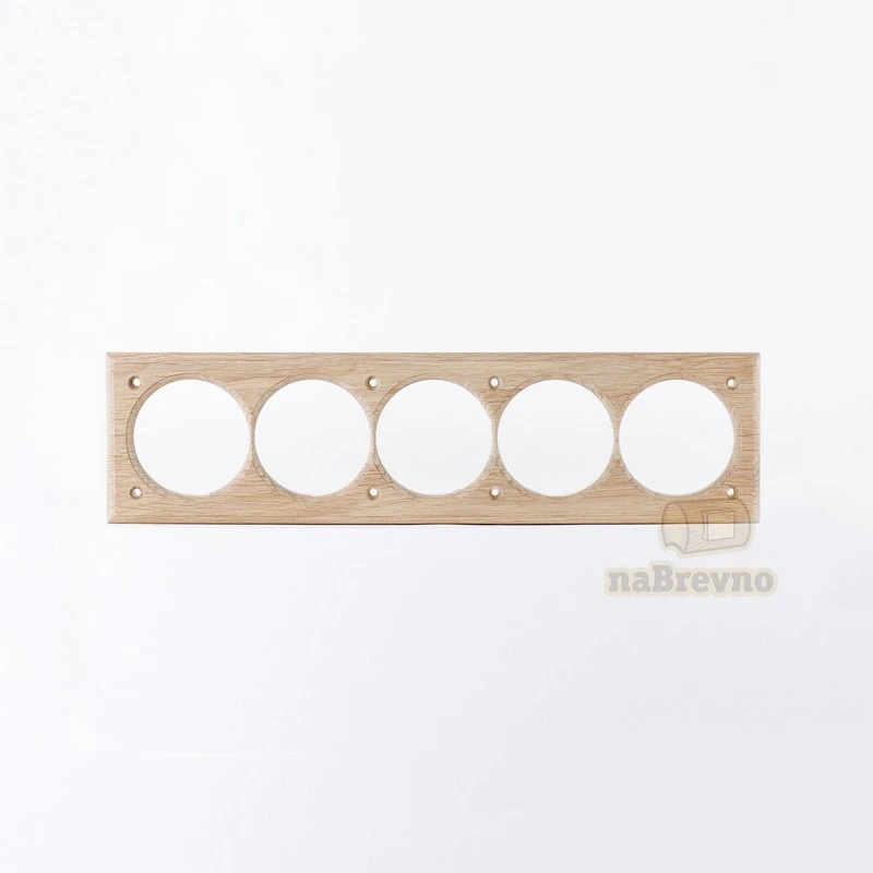 Пятерная накладка на бревно 300 мм. из натурального дуба V5-300-D naBrevno представляет важное дополнение для декоративных розеток и ретро выключателей в современном деревянном строительстве. Данная модель используется для монтажа электротоваров на поверхность бревна или блок-хауса.
