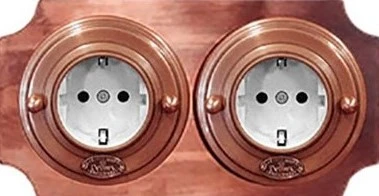 Данная модель цвет медь великолепно сочетается со всеми элементами ретро проводки: распределительными коробками, изоляторами, витыми проводами и трубками.