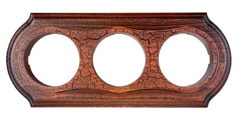 Рамка 3 местная овал из бука GE70703-51 ТМ МезонинЪ цвет кракелюр темный дуб представляет важное дополнение для декоративных розеток и ретро выключателей в современных интерьеров. Данная модель рамки из массива бука часто используется в интерьерах в стилях лофт, винтаж, модерн, стимпанк и минимализм.